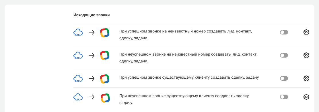 Вы можете настроить сценарии интеграции отдельно для входящих звонков.